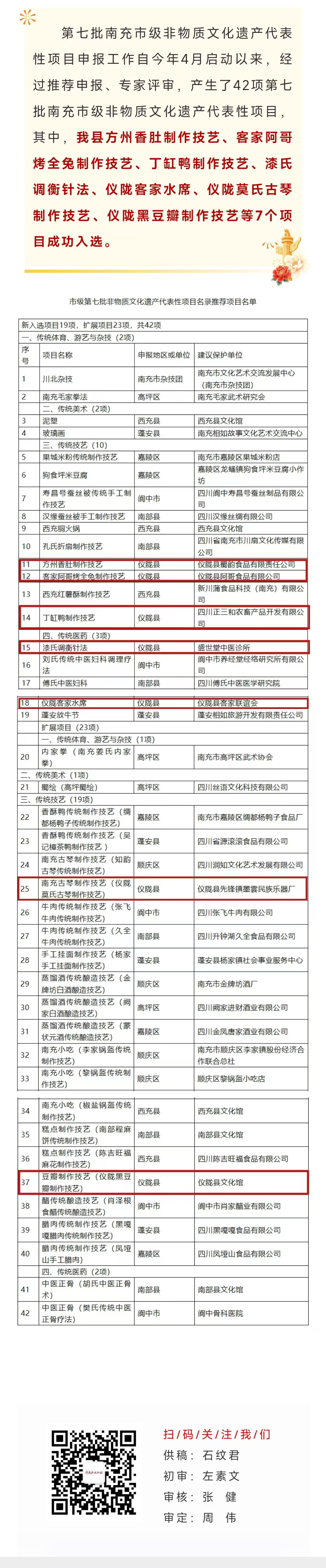 祝贺 | 仪陇县7个项目入选第七批南充市级非物质文化遗产代表性项目名录
