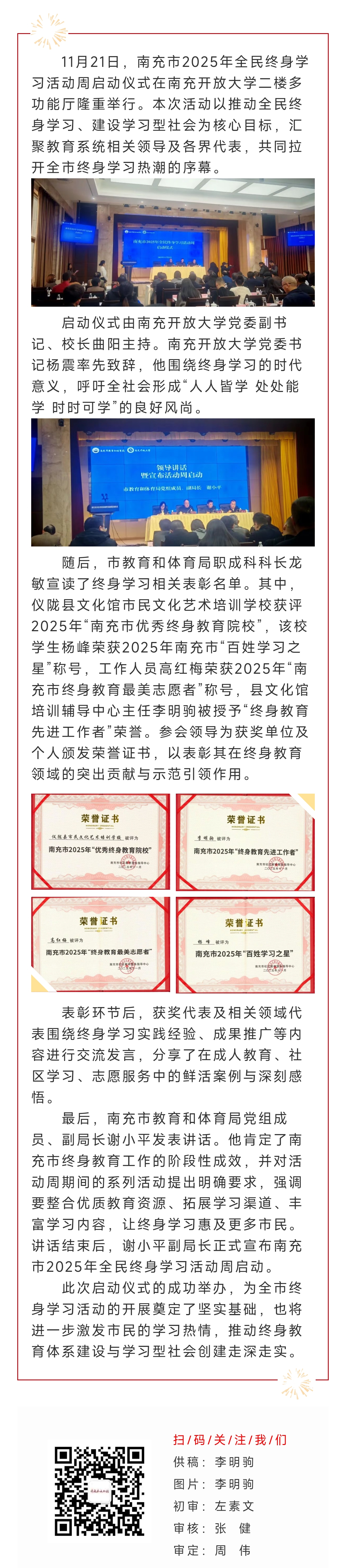 南充市2025年全民终身学习活动周启动仪式顺利举行 仪陇县文化馆市民文化艺术培训学校荣获多项荣誉