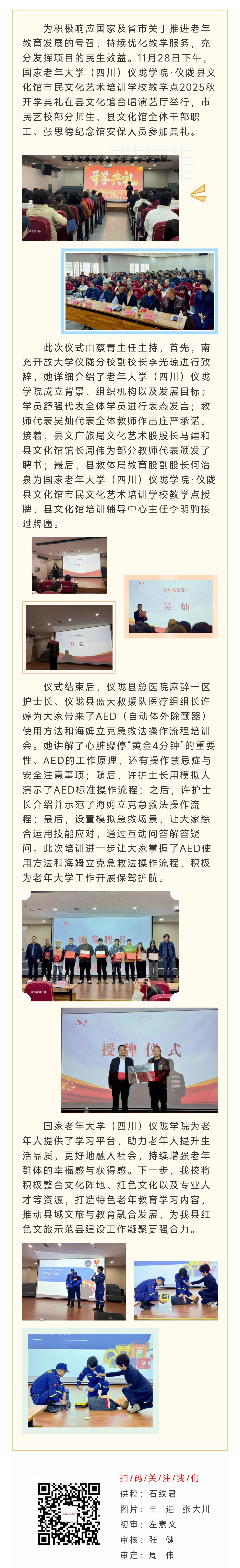 国家老年大学(四川)仪陇学院·仪陇县文化馆市民文化艺术培训学校教学点2025秋开学典礼