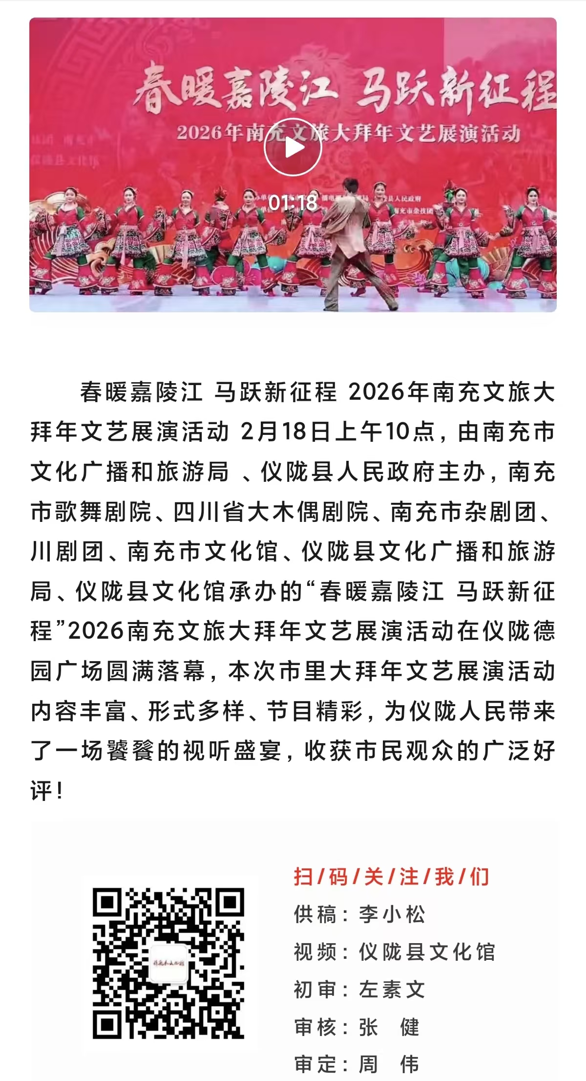 春暖嘉陵江 马跃新征程 2026年南充文旅大拜年文艺展演活动