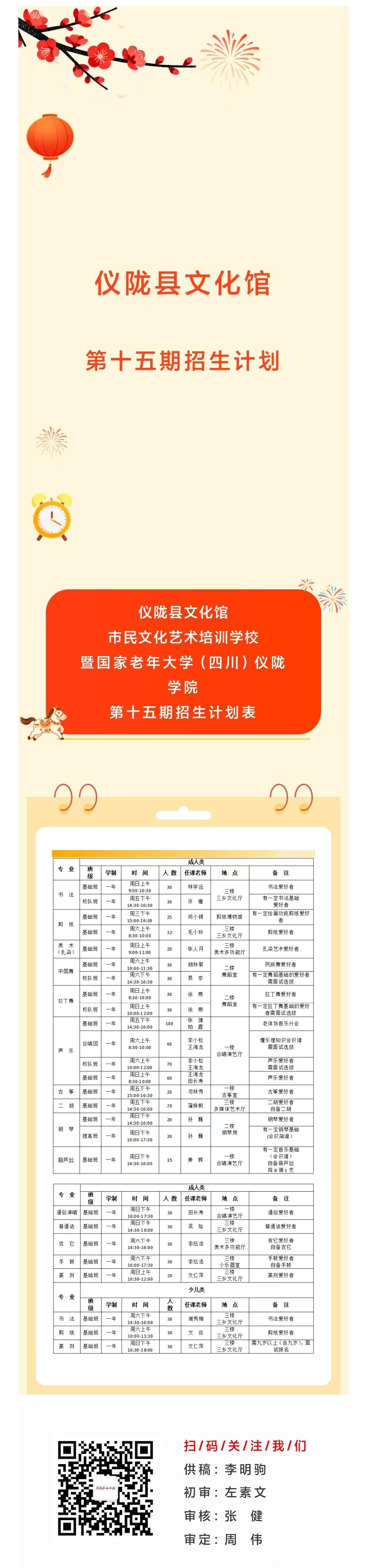 仪陇县文化馆市民文化艺术培训学校暨国家老年大学(四川)仪陇学院第十五期招生计划表