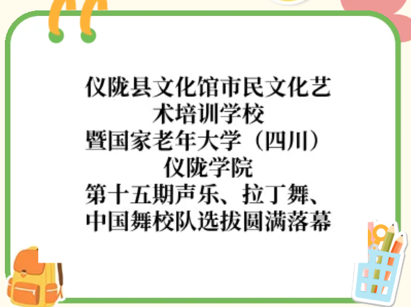 仪陇县文化馆市民文化艺术培训学校暨国家老年大学(四川)仪陇学院第十五期声乐、拉丁舞、中国舞校队选拔圆满落幕